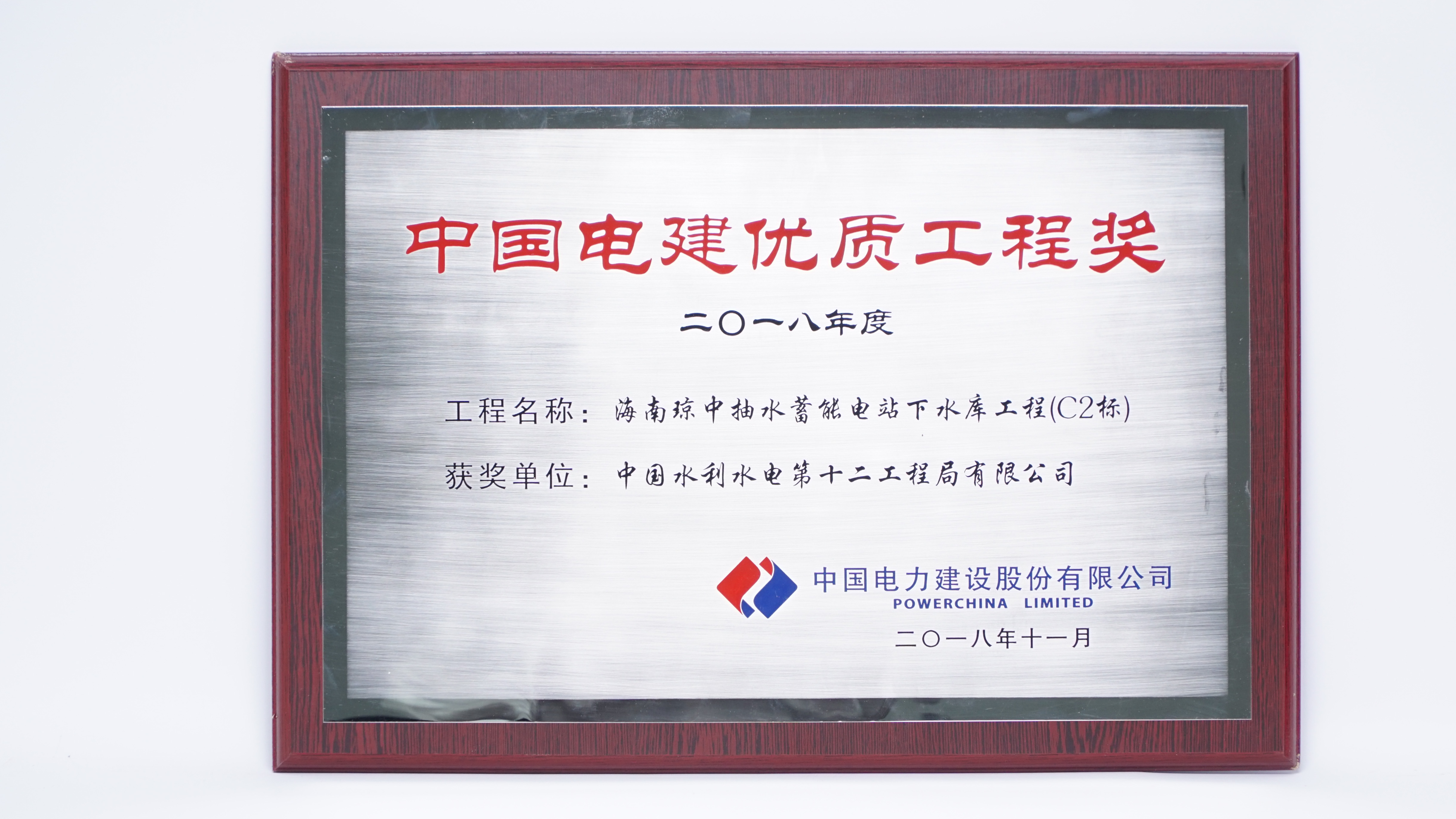 海南瓊中抽水蓄能電站下水庫工程(C2標(biāo))榮獲2018年度中國電建優(yōu)質(zhì)工程獎(jiǎng)