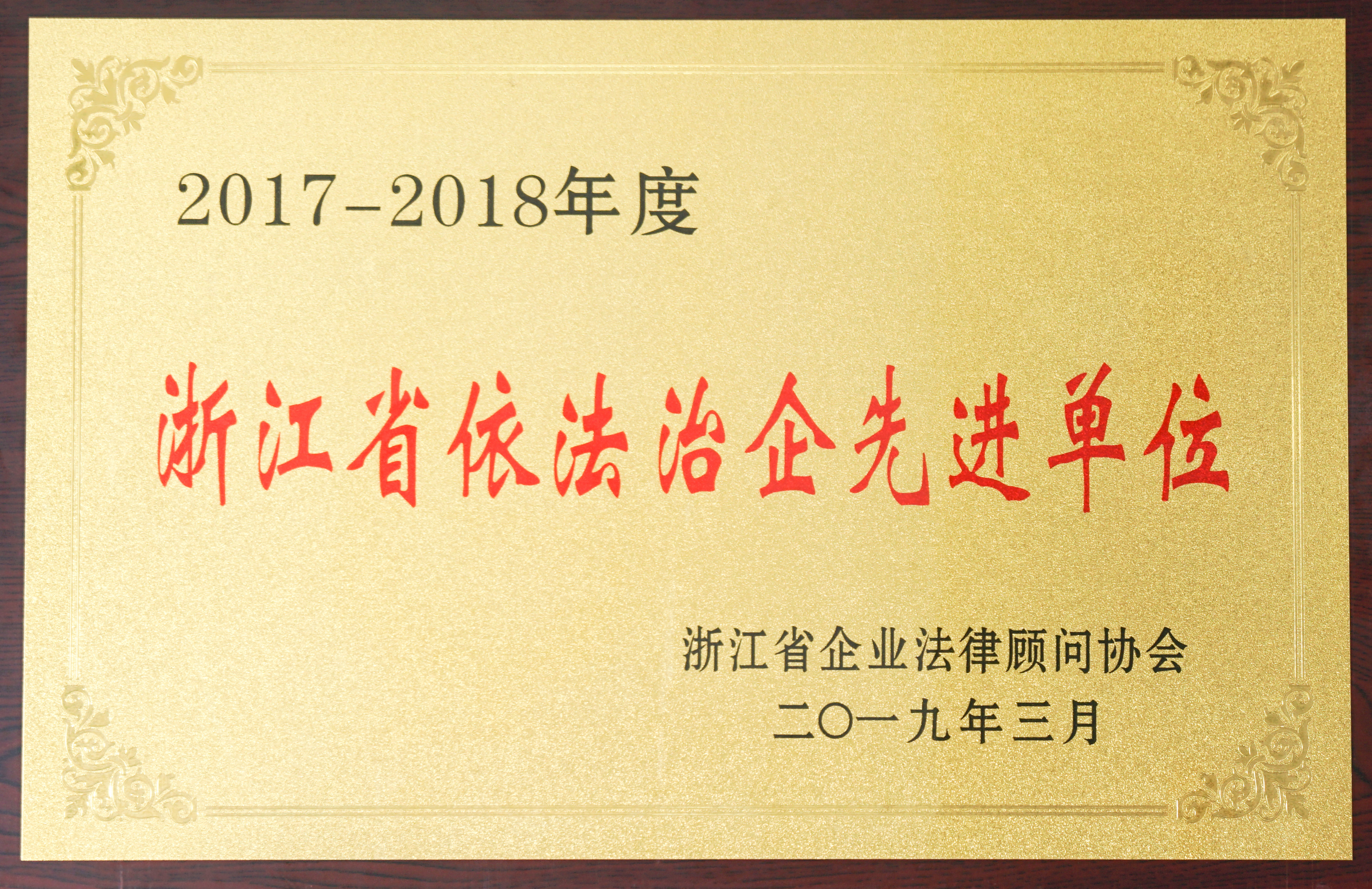 2017-2018年度浙江省依法治企先進單位