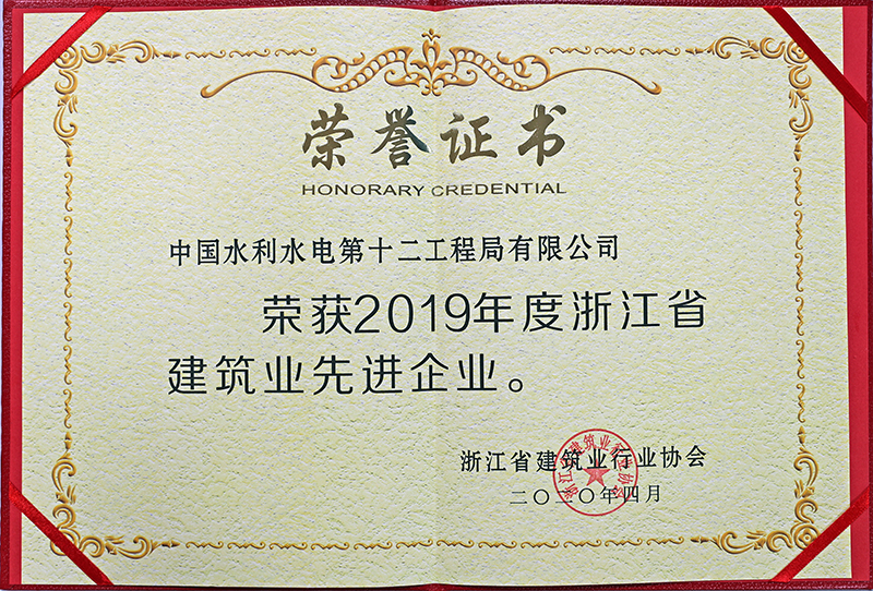 公司榮獲2019年度浙江省建筑業(yè)先進企業(yè)