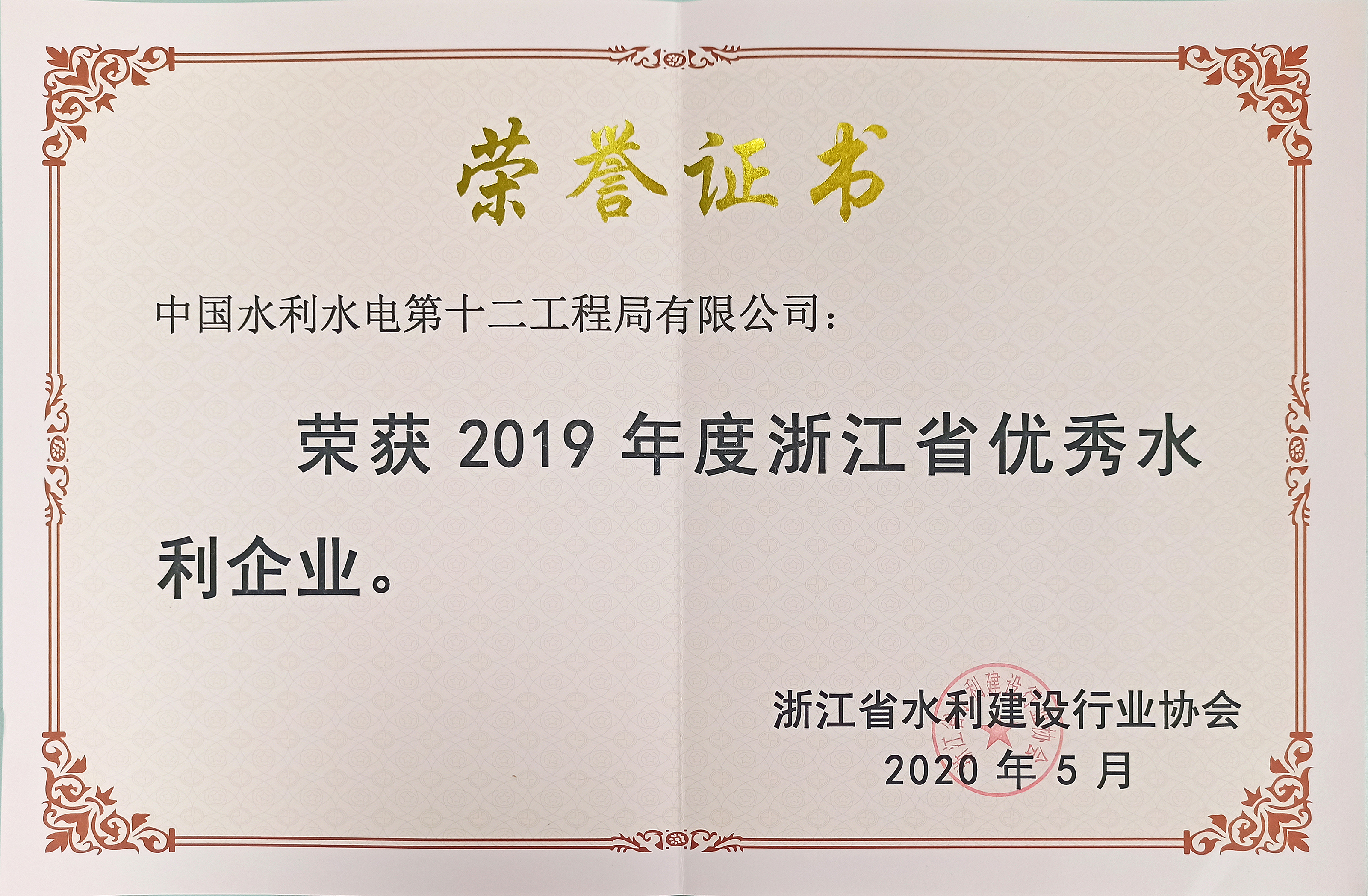 公司榮獲2019年度浙江省優(yōu)秀水利企業(yè)
