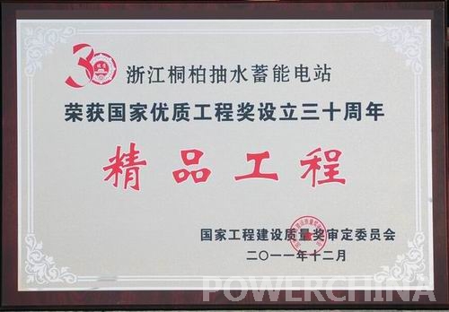浙江桐柏抽水蓄能電站榮獲“國家優(yōu)質工程獎設立三十周年精品工程”