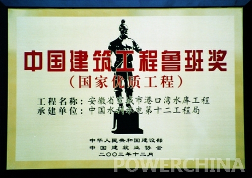 安徽港口灣水庫(kù)獲“魯班獎(jiǎng)”