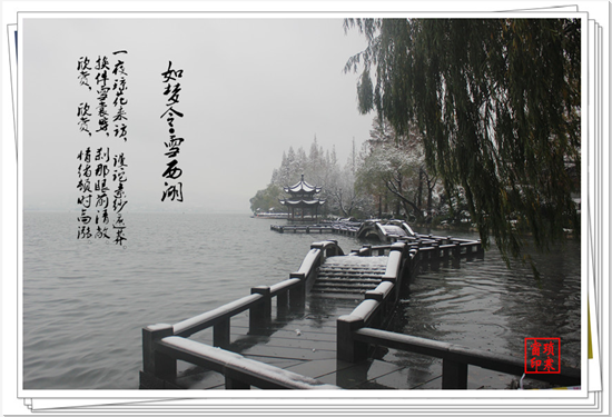 《如夢令·雪西湖》 一夜瓊花來訪,謾詫素紗遮莽。 換件雪裳穿,剎那眼前清敞。 欣賞,欣賞,情緒頓時高漲。