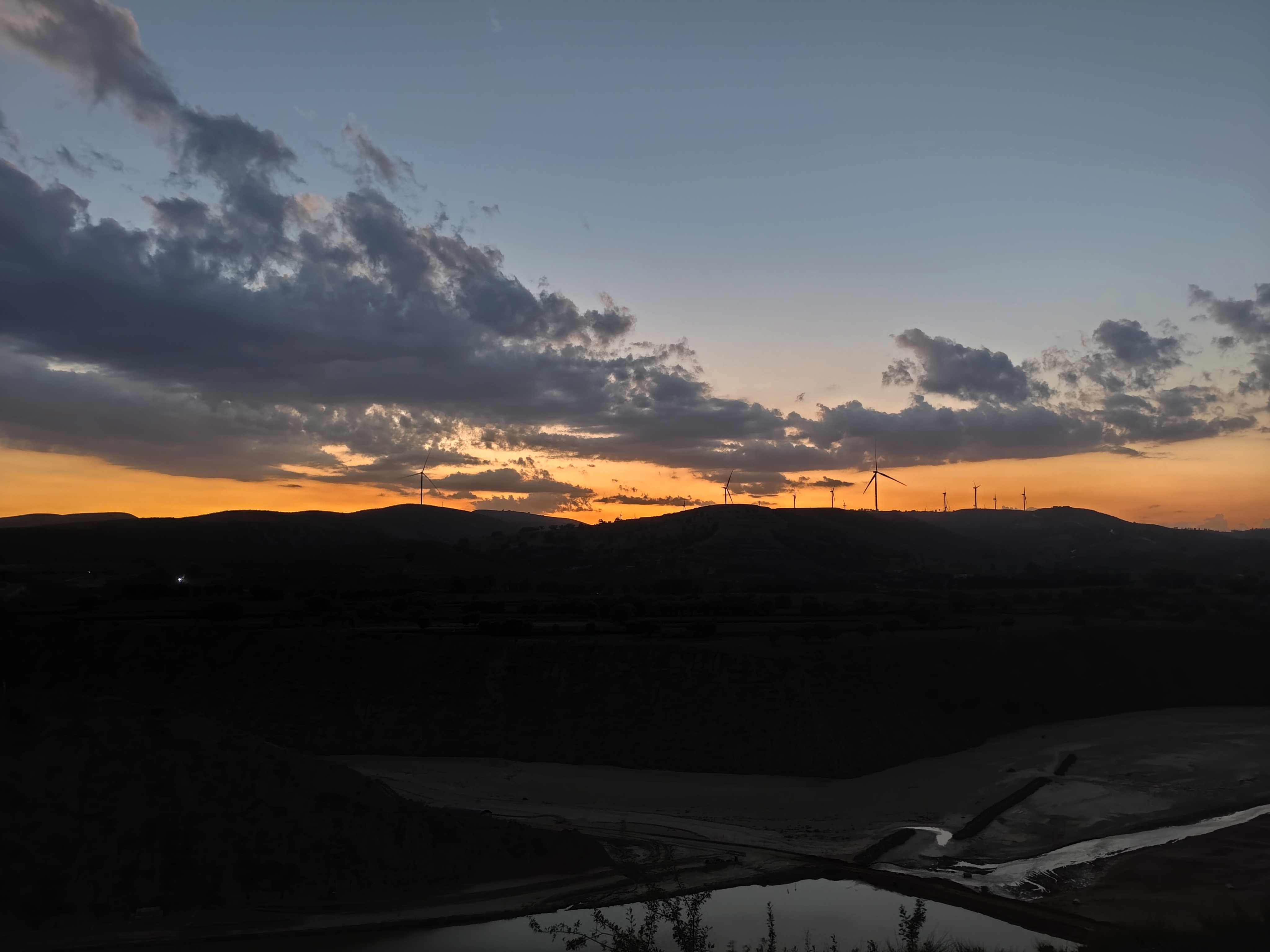 當(dāng)最后一縷夕陽的金輝掠過黃土高原的溝壑,陜北的傍晚便在風(fēng)與云的協(xié)奏中,緩緩拉開了一幅雄渾又細(xì)膩的畫卷。來到項(xiàng)目已有兩月,看慣了白日里工地的機(jī)械轟鳴,卻獨(dú)獨(dú)為這暮色中的天地心折。 天際是大自然最慷慨的調(diào)色盤。從地平線向上,橙黃如熔金的晚霞漸次暈染開,與灰藍(lán)的天穹交織出溫柔的過渡。大片的云絮被晚風(fēng)梳理著,有的如棉垛堆疊,沉甸甸地墜在半空;有的似輕紗曼舞,在余暉里透出銀灰的輪廓。那些矗立的風(fēng)機(jī)在遠(yuǎn)山的剪影里緩緩轉(zhuǎn)動(dòng),在夕陽下勾勒出遒勁的線條。 腳下河道的水流,此時(shí)也斂去了白日的粼粼波光,化作一方鏡面,將天空的橙與云的影,都悄無聲息地收納其中。岸邊裸露出黃土的原色,與遠(yuǎn)處深邃的溝壑連成一片,那是黃土高原千百年水土交融的印記,溝壑縱橫間,藏著時(shí)光沖刷的故事。偶有幾株頑強(qiáng)的草木,于暮色中探出模糊的枝椏,為這深沉的黃褐添了一絲倔強(qiáng)的生機(jī)。 風(fēng)從高原深處吹來,帶著黃土的質(zhì)樸氣息,掠過耳畔時(shí),仿佛能聽見這片土地的呼吸。它吹過風(fēng)機(jī)的葉片,發(fā)出低沉的嗡鳴;它掠過水庫的水面,漾起細(xì)碎的漣漪;它拂過我的臉頰,帶來兩個(gè)月以來與這片土地相擁的熟悉感。 從最初對(duì)黃土漫天的陌生,到如今對(duì)這暮色風(fēng)光的眷戀,我漸漸讀懂了陜北的美,它不似江南水鄉(xiāng)的婉約,也不具名山大川的巍峨,卻有著黃土高原獨(dú)有的雄渾與厚重。在項(xiàng)目部的日子,白天是建設(shè)者的忙碌,傍晚是大自然畫卷般的饋贈(zèng),一剛一柔,在這片土地上奇妙地共生。 看著夕陽徹底沉入遠(yuǎn)山,天際的橙紅慢慢褪成黛青,風(fēng)機(jī)的輪廓在夜色中愈發(fā)清晰,河道的水面也溶進(jìn)了墨色的懷抱。我知道,這樣的暮色,還將在往后的日子里,一次次為我鋪展。而我與黃土高原的故事,也將在這風(fēng)與云、光與影的交替中,繼續(xù)書寫下去。