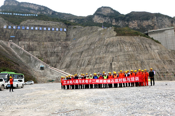 11月11日至13日,中國水電八局副總工程師田福文帶隊的30余名技術(shù)骨干到我公司承建的貴州夾巖水利樞紐工程施工現(xiàn)場學(xué)習(xí)交流面板堆石壩施工經(jīng)驗。 交流期間,公司水電分局副總工程師兼夾巖項目總工程師馮友文作了一堂面板堆石壩方面的專題技術(shù)講座。堆石壩是公司的一大拳頭施工產(chǎn)品,其中面板堆石壩形成了管理、技術(shù)、規(guī)模、設(shè)備、質(zhì)量五大優(yōu)勢,我公司也是目前國內(nèi)承建面板堆石壩工程最多、施工經(jīng)驗最豐富的企業(yè)。貴州夾巖水利樞紐水源1標(biāo)自2017年9月30日成功實現(xiàn)大江截流以來,面板堆石壩填筑施工均提前實現(xiàn)多個重大節(jié)點目標(biāo)。今年12月上旬預(yù)計提前實現(xiàn)全斷面填筑至EL1266的重要年度節(jié)點目標(biāo)。在施工期間,項目部克服了崩塌堆積體條件下高水頭圍堰防滲技術(shù)、河床基坑深覆蓋層開挖、當(dāng)年大江截流當(dāng)年開始大壩填筑、富含溶蝕夾泥層料場高強度開采及典型卡斯特地貌下的壩基灌漿處理等一系列工程技術(shù)難題和實際施工困難,受到業(yè)主、監(jiān)理等參建各方的高度稱贊和兄弟單位的一致認(rèn)可。 水電八局技術(shù)骨干對我公司貴州夾巖面板堆石壩方面取得的豐碩成果及豐富的施工經(jīng)驗表示了高度認(rèn)可和稱贊,我公司也希望能到水電八局碾壓混凝土壩施工現(xiàn)場進行相關(guān)的對標(biāo)學(xué)習(xí)。通過本次活動,不僅使雙方實現(xiàn)技術(shù)優(yōu)勢互補,相互取長補短,還為后期雙方年輕技術(shù)人員的培養(yǎng)探索了一種全新合作模式。
