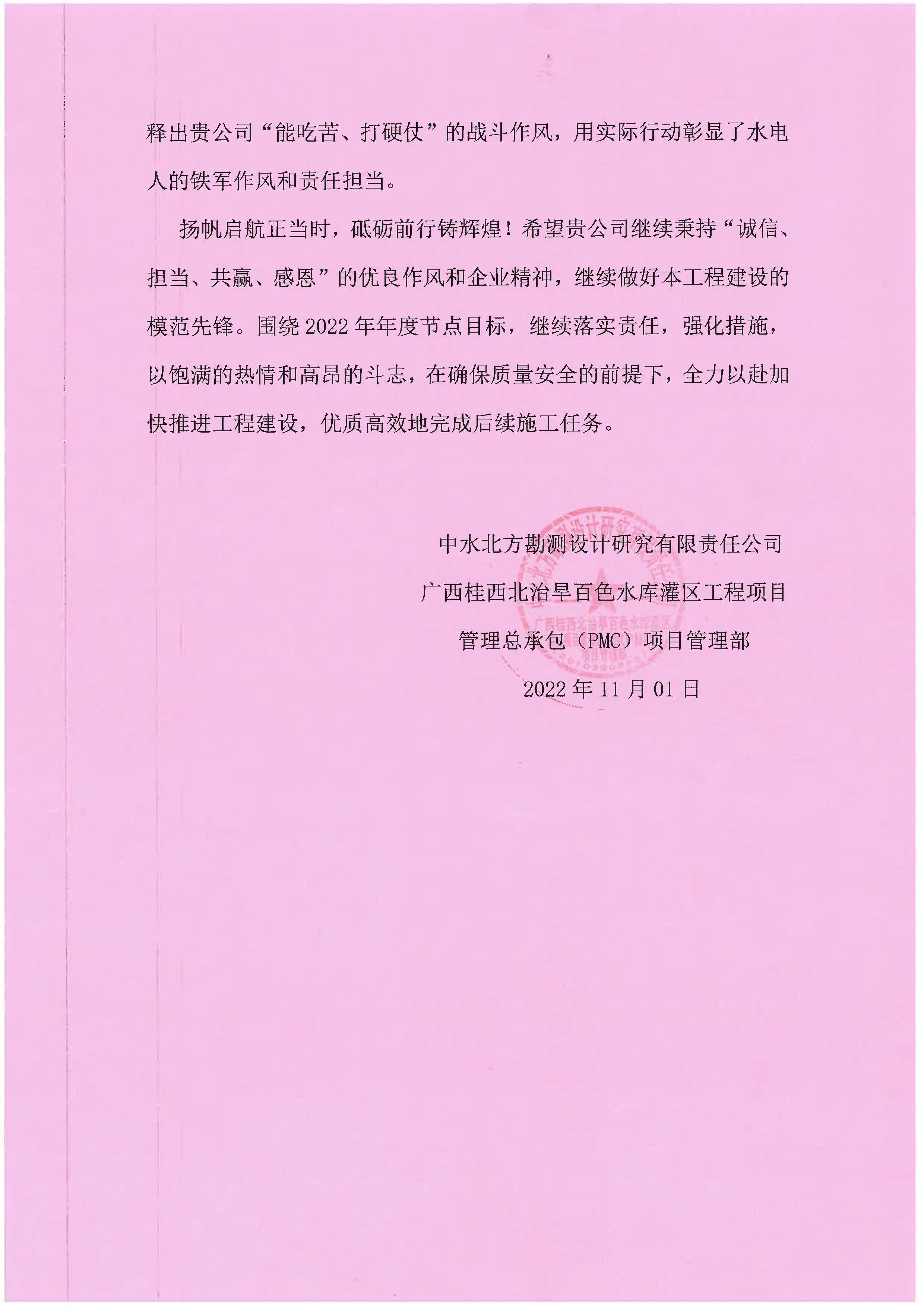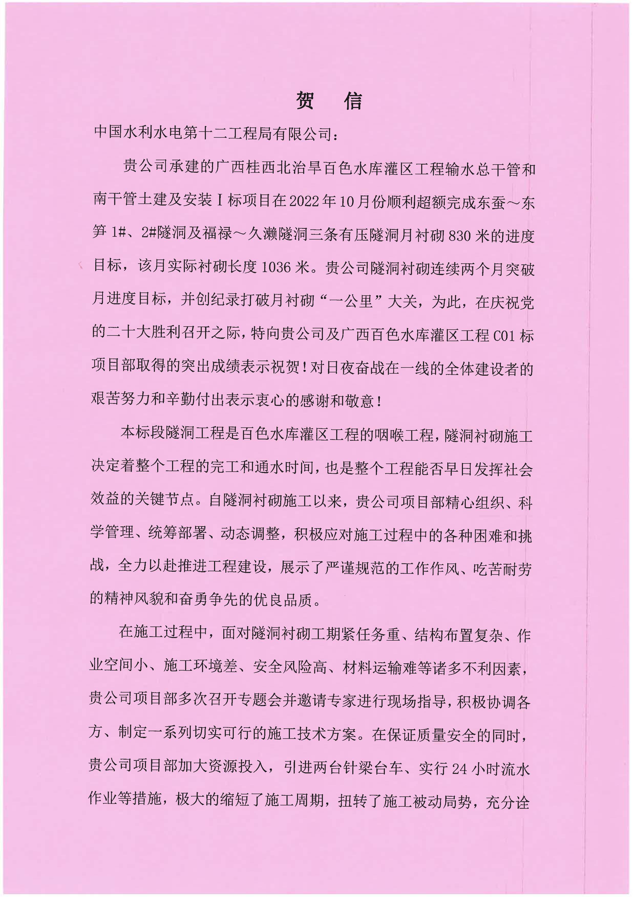 10月31日15點(diǎn),隨著東蠶至東筍1號(hào)隧洞最后一車混凝土順利澆筑完成,百色水庫(kù)灌區(qū)工程三條有壓隧洞六個(gè)工作面月襯砌長(zhǎng)度刷新紀(jì)錄,達(dá)到1036米,超出10月份計(jì)劃206米,為2023年1月15日前完成隧洞混凝土襯砌節(jié)點(diǎn)目標(biāo)奠定了堅(jiān)實(shí)基礎(chǔ)。百色水庫(kù)灌區(qū)管理中心和中水北方勘測(cè)設(shè)計(jì)研究有限責(zé)任公司PMC項(xiàng)目部發(fā)來賀信。 百色水庫(kù)灌區(qū)工程有壓隧洞總長(zhǎng)度5.45千米,開挖斷面為4米×4米的城門洞型,襯砌后呈直徑2.8米的圓形過水?dāng)嗝妫r砌為16毫米鋼管襯加C20自密實(shí)混凝土和直徑28雙層鋼筋C30混凝土兩種結(jié)構(gòu)交叉布置,現(xiàn)有六個(gè)襯砌工作面中,四個(gè)工作面采用每節(jié)1.2米×0.3米拼裝鋼模板施工,兩個(gè)工作面采用針梁臺(tái)車施工。 本工程三條有壓隧洞具有圍巖地質(zhì)條件差、結(jié)構(gòu)布置復(fù)雜、作業(yè)空間小、施工環(huán)境差、材料運(yùn)輸難、安全風(fēng)險(xiǎn)高等特點(diǎn)。襯砌施工開始之前,項(xiàng)目部多次通過內(nèi)部研討、特邀外部專家等方式對(duì)襯砌施工方案進(jìn)行分析討論優(yōu)化。襯砌施工階段,通過領(lǐng)導(dǎo)班子值班帶班、現(xiàn)場(chǎng)集中統(tǒng)一調(diào)度、黨員先鋒崗掛圖掛牌指揮、關(guān)鍵工序旁站等一系列管控措施,澆筑質(zhì)量不斷提升,得到了參建各方的一致認(rèn)可和肯定。在確保安全、質(zhì)量受控的同時(shí),通過施工工藝優(yōu)化、改進(jìn)施工方法、加大資源配置、強(qiáng)化內(nèi)外部溝通協(xié)調(diào)等方式,施工進(jìn)度穩(wěn)步提高,連續(xù)兩個(gè)月均突破原進(jìn)度目標(biāo)要求。現(xiàn)三條隧洞六個(gè)襯砌工作面24小時(shí)不間斷有序施工,累計(jì)已完成襯砌總長(zhǎng)度3.73千米,剩余1.7千米。鋼筋混凝土襯砌段平均達(dá)43小時(shí)每倉(cāng),較原計(jì)劃縮短了17小時(shí),鋼管自密實(shí)混凝土襯砌段平均達(dá)45小時(shí)每倉(cāng),較原計(jì)劃縮短了27小時(shí)。 百色水庫(kù)灌區(qū)工程是“國(guó)家172項(xiàng)節(jié)水供水”重大水利項(xiàng)目,受各級(jí)黨委政府關(guān)注度高,項(xiàng)目順利實(shí)現(xiàn)通水目標(biāo)意義重大。項(xiàng)目部將一如既往地弘揚(yáng)“忠誠(chéng)、干凈、擔(dān)當(dāng),科學(xué)、求實(shí)、創(chuàng)新”的新時(shí)代水利精神,直面工程建設(shè)艱難險(xiǎn)阻,永葆艱苦奮斗本色,堅(jiān)定不移沿著習(xí)近平總書記指引的方向奮勇前進(jìn),全心全力推進(jìn)工程建設(shè),保質(zhì)保量完成工程建設(shè)任務(wù),爭(zhēng)取讓紅色工程早日造福百色老區(qū)。