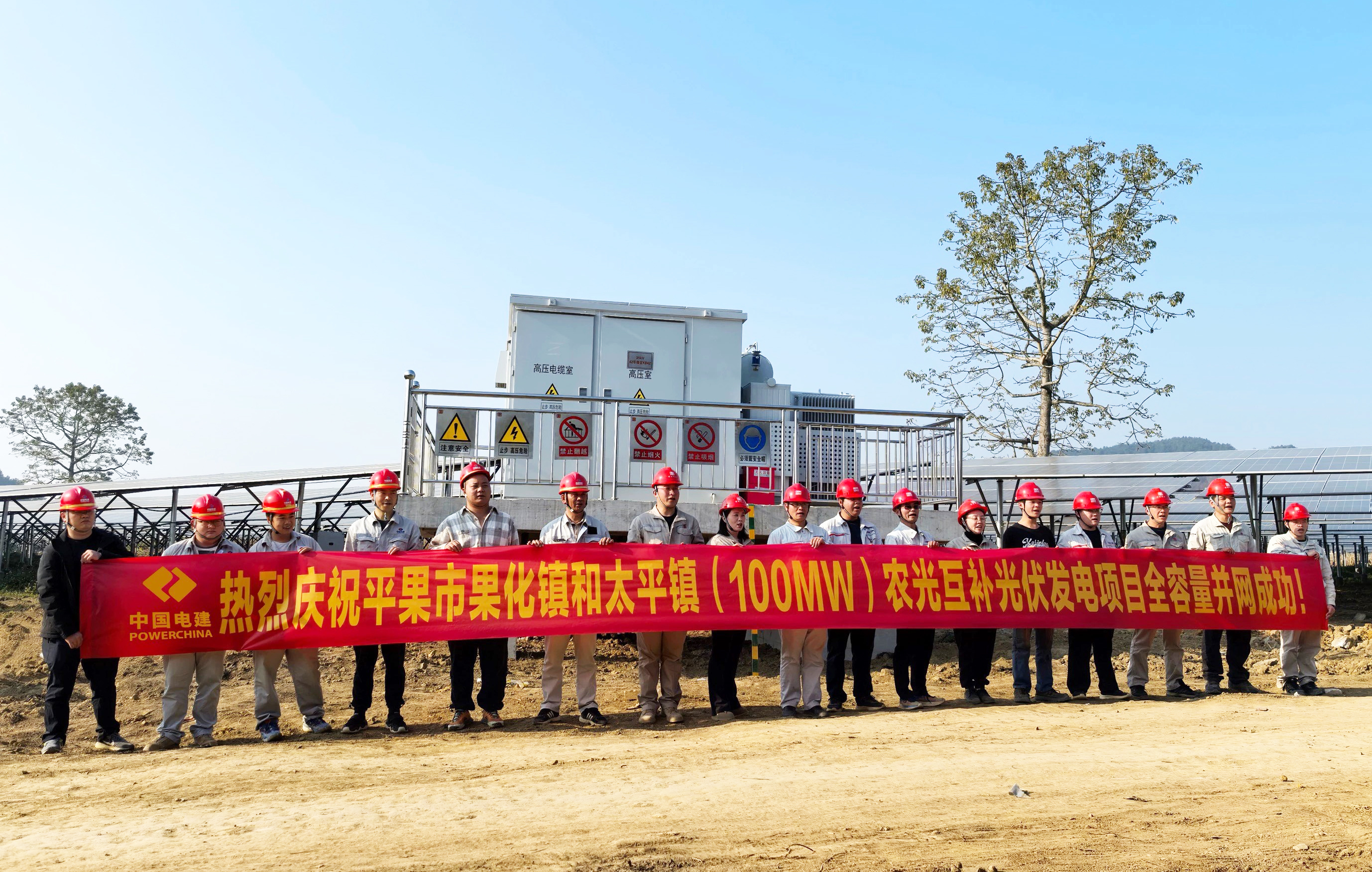 12月24日,廣西平果農(nóng)光互補(bǔ)100兆瓦光伏發(fā)電項(xiàng)目順利完成全容量并網(wǎng)發(fā)電。 廣西平果農(nóng)光互補(bǔ)光伏發(fā)電項(xiàng)目位于廣西壯族自治區(qū)平果市的果化鎮(zhèn)與太平鎮(zhèn),總裝機(jī)容量為100兆瓦,并新建一座110千伏升壓站。本發(fā)電系統(tǒng)采用分塊發(fā)電、集中并網(wǎng)方案,共劃分為39個(gè)光伏并網(wǎng)發(fā)電單元。光伏方陣經(jīng)逆變升壓至35千伏,通過5條35千伏集電線路接入110千伏升壓站的35千伏配電室。此外,本項(xiàng)目還通過送出線路與110千伏亮灣變電站相連,線路全長(zhǎng)約18公里。 項(xiàng)目所在地地勢(shì)復(fù)雜,峰巒疊嶂,溝壑交錯(cuò),且礦區(qū)廣泛分布,給施工帶來極大困難。項(xiàng)目部根據(jù)現(xiàn)場(chǎng)實(shí)際情況,并結(jié)合公司項(xiàng)目管理的各項(xiàng)要求,積極探索并制定科學(xué)可行的施工方案。項(xiàng)目建設(shè)團(tuán)隊(duì)奮勇爭(zhēng)先,克服重重困難,先后經(jīng)歷了連續(xù)高溫、強(qiáng)降雨及臺(tái)風(fēng)等自然災(zāi)害的考驗(yàn),在確保安全、質(zhì)量和進(jìn)度的前提下,最終成功實(shí)現(xiàn)了全容量并網(wǎng)。 此次全容量并網(wǎng)意義重大,是項(xiàng)目部全體人員辛勤努力的結(jié)果。項(xiàng)目投產(chǎn)后,預(yù)計(jì)年平均上網(wǎng)電量為1.35億千瓦時(shí),運(yùn)行期內(nèi)上網(wǎng)電量總計(jì)將達(dá)到27.09億千瓦時(shí),具有顯著經(jīng)濟(jì)效益和生態(tài)效益。