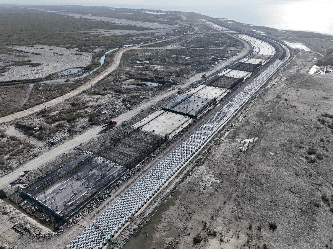 在溫州市甌江口的甌江入海口,東海海岸之畔,水電十二局承建的海塘安瀾工程生態(tài)堤項目建設(shè)正酣,初具規(guī)模的生態(tài)堤如同一條蜿蜒的綠色絲帶,柔順地沿著海岸伸展,鑲嵌在大地與海岸之間。 海塘安瀾生態(tài)堤項目位于溫州市淺灘圍涂內(nèi),西起淺灘一期東圍堤,沿陸海分界線建堤,終點接靈霓北堤,工程計劃新建海塘7.71公里,工程任務(wù)以防潮排澇為主,兼顧改善和提升水生態(tài)、水景觀,工程完工后將構(gòu)建起一道堅固的防洪防潮屏障 ,促進區(qū)域經(jīng)濟可持續(xù)發(fā)展。 攻堅克難攀高峰 伴隨著陣陣轟鳴聲,施工現(xiàn)場大型機械有序作業(yè),運輸車輛往來穿梭的場景也映入眼簾,專業(yè)技術(shù)人員實時掌控現(xiàn)場動態(tài),及時調(diào)整施工方案和技術(shù)參數(shù),確保施工過程始終處于安全可控狀態(tài)。生態(tài)堤工程工期緊、任務(wù)重、工藝復(fù)雜,一個個困難宛如大山壓在建設(shè)者心頭,但沒有任何一位建設(shè)者退卻,他們始終堅守一線、攻堅克難。 臨海的地理位置讓工程建設(shè)時刻面臨著臺風(fēng)和雨季的嚴峻考驗。每年多次的臺風(fēng)侵襲,帶來狂風(fēng)、暴雨和巨浪,不僅嚴重威脅著施工人員的生命安全,還會對已建成的部分工程結(jié)構(gòu)造成破壞。在雨季,長時間的降雨使得施工現(xiàn)場積水嚴重,土壤含水量飽和,給混凝土澆筑等施工作業(yè)帶來極大困難。 為應(yīng)對這些挑戰(zhàn),項目部用好數(shù)字防控手段,夯實“人防+技防”動態(tài)監(jiān)測體系,實時掌握情況、全面高效調(diào)度,全面織密防護網(wǎng)。同時強化隱患排查整治,加大低洼易澇區(qū)等薄弱環(huán)節(jié)的風(fēng)險排查力度,全面落實防御措施,及時消除安全隱患,不留盲區(qū)死角。 在臺風(fēng)來臨之際,項目部對現(xiàn)場生活區(qū)和現(xiàn)場值班房集裝箱、制漿站水泥罐、鋼筋加工棚和現(xiàn)場樁機等進行全面加固,同時對施工便道缺口進行擋水封閉,現(xiàn)場停止一切必要的施工。在雨季施工期間,加強排水系統(tǒng)的建設(shè)和維護,通過設(shè)置集水井、排水溝等措施,及時排除場地積水。為應(yīng)對七八月受海洋氣候造成的施工困難,日常施工過程中項目部動態(tài)調(diào)整施工方案,進行多條工程施工線路多點同時開展作業(yè),在提升工程效率的同時確保工程整體進度順利推進。 在施工管理過程中,構(gòu)建了完備且嚴謹?shù)馁|(zhì)量管理體系,覆蓋從原材料的精細檢驗到施工全過程的嚴格監(jiān)督環(huán)節(jié)。緊密依循既定目標推進質(zhì)量管理工作,憑借著對每個環(huán)節(jié)的精準把控,本年度工程質(zhì)量事故零發(fā)生,圓滿達成預(yù)設(shè)的質(zhì)量目標,為項目筑牢堅實質(zhì)量根基。同時通過在施工現(xiàn)場合理設(shè)置醒目的安全警示標識,定期開展深入且實用的安全教育培訓(xùn)活動并精心組織應(yīng)急演練,全方位保障施工過程的安全有序,保障每位施工人員的生命安全。 黨建引領(lǐng)鑄精品 在這場波瀾壯闊的建設(shè)浪潮中,黨建引領(lǐng)猶如一盞明燈,照亮了工程前行的道路,為鑄就精品工程提供了堅實保障。 項目黨支部充分發(fā)揮戰(zhàn)斗堡壘作用,將黨建工作深度融入工程建設(shè)的每一個環(huán)節(jié)。黨支部設(shè)立了黨員活動室,定期組織黨員開展政治理論學(xué)習(xí)和技術(shù)交流活動,不斷提高黨員的政治素養(yǎng)和業(yè)務(wù)能力。同時,建立了黨員責(zé)任區(qū)制度,明確黨員的職責(zé)和任務(wù),做到關(guān)鍵崗位有黨員、困難面前有黨員、突擊攻關(guān)有黨員。 項目黨支部緊緊圍繞工程建設(shè)實際,打造了獨具特色的黨建品牌——“海塘衛(wèi)士,紅色先鋒”,這一品牌不僅是項目部全體黨員干部共同努力的結(jié)晶,更代表著項目部在黨建工作和項目建設(shè)中的不懈追求和卓越成就。 在工程建設(shè)中,項目部黨員始終沖鋒在前,勇挑重擔,在復(fù)雜的施工環(huán)境中以身作則,帶領(lǐng)全體員工攻堅克難,確保項目建設(shè)進度和質(zhì)量。他們?nèi)缰艺\的海塘衛(wèi)士,為項目的順利推進保駕護航。為了推進“海塘衛(wèi)士,紅色先鋒”黨建品牌走深走實,項目部還積極開展紅色教育活動,組織黨員參觀紅色革命基地,重溫入黨誓詞,傳承紅色基因等,激發(fā)黨員的使命感和責(zé)任感。 黨支部通過開展勞動競賽和技術(shù)創(chuàng)新活動,激發(fā)黨員干部的積極性和創(chuàng)造性。通過舉辦技能比武大賽、合理化建議征集等活動,營造比學(xué)趕超的良好氛圍,推動了工程建設(shè)的技術(shù)進步和質(zhì)量提升。在黨員的帶動下,全體建設(shè)者團結(jié)一心,奮勇拼搏,努力將甌江口海塘安瀾工程生態(tài)堤打造成為經(jīng)得起歷史檢驗的精品工程。 守護自然繪畫卷 海塘安瀾工程生態(tài)堤項目始終秉持著綠色發(fā)展理念,致力于在建設(shè)過程中實現(xiàn)人與自然的和諧共生,精心描繪出一幅美麗的生態(tài)畫卷。 在施工過程中,始終將生態(tài)保護放在首位,采取了一系列行之有效的環(huán)保措施。項目在施工場地周邊設(shè)置泥漿池,通過對施工過程中產(chǎn)生的泥漿進行集中處理,并將其中一部分做沖泥管帶二次使用,避免了環(huán)境的污染。 為了實時監(jiān)