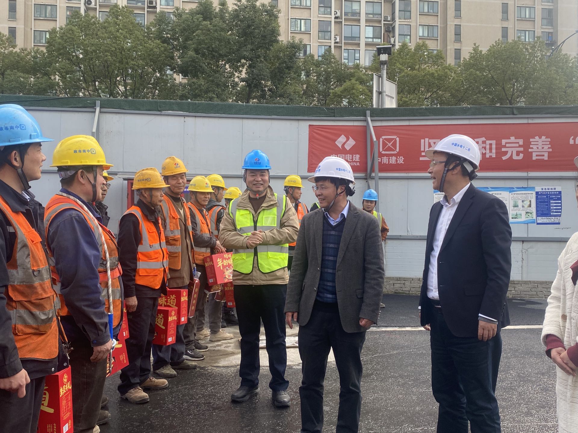 1月14日,在新春佳節(jié)即將到來之際,浙江省總工會常委、省部屬企事業(yè)工會主席葉龍茂、浙江省省部屬企事業(yè)工會副主席顧怡敏一行到杭州中興110千伏輸變電隧道工程(一期)項目調(diào)研指導并慰問項目一線職工。公司黨委副書記、工會主席文林陪同。 葉龍茂一行深入施工現(xiàn)場,實地察看C4工作井盾構(gòu)機安裝、1#工作井盾構(gòu)施工、明挖段主體結(jié)構(gòu)等施工區(qū)域,詳細了解項目建設進度、安全保障和施工過程中遇到的困難,并與一線員工親切交流,深入了解他們的工作強度、工作環(huán)境以及生活狀況,叮囑他們務必要注意身體,合理安排作業(yè)時間,同時為全體員工送上了堅果禮盒、飲品等慰問品,向奮戰(zhàn)在工程建設一線的職工提前致以新春問候。 在座談會上,葉龍茂聽取了杭州中興項目負責人關(guān)于工程建設、工會工作等情況的匯報,對員工們?yōu)轫椖拷ㄔO付出的辛勤努力給予了高度贊揚。他強調(diào),項目部要切實做好安全生產(chǎn)工作,增強項目員工的自我保護意識,在保障安全、質(zhì)量的基礎上,確保項目建設順利推進。同時工會組織也要繼續(xù)努力,發(fā)揮好“娘家人”的作用,讓職工感受到工會組織的溫暖。 文林對葉龍茂一行的到來表示熱烈歡迎。他表示,水電十二局將持續(xù)圍繞項目生產(chǎn)經(jīng)營中心工作,不斷夯實工會工作基礎,重點做好日常管理和活動開展等各項工作,團結(jié)帶領(lǐng)廣大員工加快工程建設,為浙江省經(jīng)濟社會發(fā)展貢獻更大力量。 公司群眾工作部、基礎設施公司相關(guān)負責人參加活動。