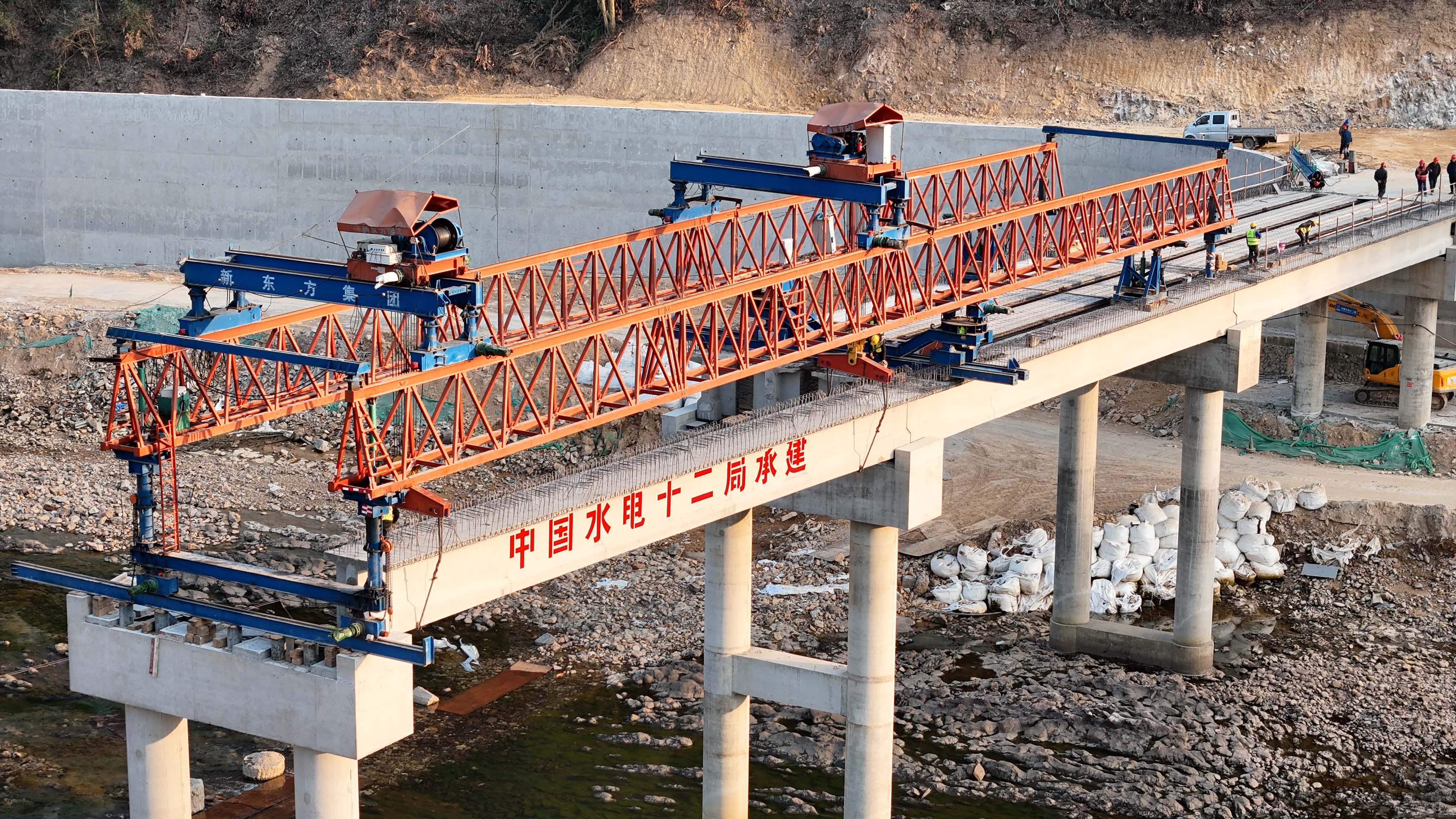 川陸所會,四省通衢。衢州,自古就占據(jù)著浙江省重要水系的脈搏,也是浙江母親河錢塘江的源頭。 憶往昔,湖南鎮(zhèn)水電站大壩1958年開工興建,1983年竣工,水庫位于錢塘江干流衢江支流烏溪江上,是錢江源頭的防洪通道,水庫壩高129米,萬頃碧波蓄于高山峽谷、群峰萬壑中,似幽谷明珠,又如高臺明鏡,曾被譽為“華東第一高壩”。湖南鎮(zhèn)水電站是繼新安江、富春江水電站后,水電十二局承建的又一較大水電站。 看今朝,由公司承建的烏溪江混合式抽水蓄能項目進廠公路及橋梁工程現(xiàn)場橋墩聳然挺立,工程機械的轟鳴聲此起彼伏,工程建設(shè)如火如荼。該工程的建設(shè)是公司戰(zhàn)略縱深布局深化改革推動基礎(chǔ)設(shè)施業(yè)務(wù)的重要體現(xiàn),工程建成后將為烏溪江混合式抽水蓄能項目后期建設(shè)推進奠定堅實的基礎(chǔ)。 踏險破難勾勒交通脈絡(luò) 烏溪江地區(qū)獨特的地理風貌,為工程建設(shè)設(shè)下了重重障礙。高山林立、河谷縱橫,復雜的地形地質(zhì)條件,猶如一道道難以逾越的天塹,橫亙在建設(shè)者面前。 在湍急的烏溪江上建設(shè)跨江大橋,對施工安全和精度有極高的要求,烏溪江跨江大橋全長166.53米,上部結(jié)構(gòu)采用6×25米裝配式簡支T梁+10米鋼筋混凝土實心板,橋面連續(xù),預制梁高1.95米,實心板厚1.0米。下部結(jié)構(gòu)橋墩采用雙柱式墩,柱徑Φ1.4米,基礎(chǔ)采用2Φ1.6米灌注樁基礎(chǔ)。橋臺采用U型臺,擴大基礎(chǔ)、樁基礎(chǔ)。 灌注樁成孔是項目的施工重難點之一,樁基礎(chǔ)需要深入河床,穿越不同的地質(zhì)層,需要克服水流沖刷、河床地質(zhì)變化等不利因素,確保樁身垂直度和成孔質(zhì)量,施工難度大,對施工技術(shù)和管理水平提出了嚴峻挑戰(zhàn)。 為保證橋墩順利澆筑,項目部周密部署,超前謀劃,在準備階段,項目部成立橋梁混凝土施工專項攻堅組,多次召開專題施工會,按照方案先行原則,制定關(guān)鍵工序控制標準,受上游烏溪江水庫發(fā)電站不定時發(fā)電泄流影響,項目部采取“圍堰分流、避洪施工”措施,提前進行質(zhì)量、安全、技術(shù)交底,組織工藝工序流程標準化培訓,在支架搭設(shè)、支架預壓、模板拼裝等各關(guān)鍵工序上做好前期預演。 在施工過程中,項目管理人員現(xiàn)場全程盯控,嚴格把控安全質(zhì)量,確保工作做實做細,并制定了針對性的施工方案。施工采用穿心棒支撐、泵送混凝土澆筑,嚴控工序,集中優(yōu)勢資源高效推進工程建設(shè)。在澆筑過程中,對混凝土的配比、澆筑速度和溫度控制等關(guān)鍵環(huán)節(jié)進行了嚴格把控。施工人員嚴格按照操作規(guī)程進行作業(yè),確保澆筑的精度和質(zhì)量。經(jīng)過300余天的緊張施工,跨江大橋下部結(jié)構(gòu)順利澆筑完成,各項技術(shù)指標均滿足設(shè)計要求。 為搶抓施工進度,加快建設(shè)速度,項目部圍繞T梁架設(shè)節(jié)點目標緊抓快干、真抓實干、狠抓大干,以奮進姿態(tài)攻堅克難,錘煉出強大建設(shè)合力。項目部錨定目標、高效協(xié)同、掛圖作戰(zhàn),及時調(diào)整施工方案,保障橋梁下構(gòu)施工、T梁澆筑及運輸全過程暢通無阻,配合無間。 1月19日,隨著最后一榀T梁架設(shè)成功,標志著該項目烏溪江跨江大橋架設(shè)作業(yè)這一關(guān)鍵控制性工程順利完成。在2025年新年伊始,項目部鉚足干勁僅用一周時間完成了烏溪江跨江大橋上部結(jié)構(gòu)T梁架設(shè),不僅為新的一年開了個好頭,也為進廠道路全面完成施工打響了發(fā)令槍,成為沖刺2025年施工目標的強心劑。 黨旗飄揚凝聚奮進力量 在烏溪江工程建設(shè)的現(xiàn)場,一面鮮艷的黨旗高高飄揚,成為建設(shè)者們心中的精神支柱。 項目部以施工一線為陣地,不斷強化政治建設(shè),認真落實“一崗雙責”,班子成員堅守一線靠前指揮,通過集體學習、技能比武等豐富多彩的活動,積極鼓勵黨員“亮身份、樹形象、做貢獻”,確保關(guān)鍵環(huán)節(jié)有黨員把著,危重時刻有黨員頂著,充分發(fā)揮黨員的先鋒模范帶頭作用。 在跨江大橋的關(guān)鍵施工節(jié)點,黨員技術(shù)骨干組成的突擊隊,主動承擔起了夜間施工和高風險作業(yè)任務(wù)。他們堅守在施工一線,用實際行動詮釋著黨員的擔當和奉獻。在他們的帶動下,廣大建設(shè)者們紛紛積極投入工程建設(shè)中,形成了比學趕超的良好氛圍。 項目部通過黨建引領(lǐng),組織協(xié)調(diào)各方,科學編制施工方案、合理配置資源、組織管理人員和施工人員開展技術(shù)交底等措施,讓黨員先鋒隊帶頭顯擔當,青年突擊隊助力抓生產(chǎn),協(xié)作配合,成功攻克復雜的烏溪江水文地質(zhì)難關(guān)、灌注樁成孔工藝難關(guān),順利完成了樁基橋梁下部結(jié)構(gòu)的澆筑,為后續(xù)橋梁上部結(jié)構(gòu)施工打下了良好的基礎(chǔ)。 廉政明則路遠。項目部班子以身作則,深入開展黨紀學習教育,定期召開廉政會議,落實廉政責任,增強廉潔自律意識,積極推動廉潔工地建設(shè),嚴格落實“三重一大”決策制度,為項目的順利建設(shè)創(chuàng)造了風清氣正環(huán)境。 安全為盾構(gòu)筑精品工程 安全是項目建設(shè)的一切前提。項目部通過定期開展安全教育和演練活動,鼓勵員工積極參加安全生產(chǎn)趣味知識競賽及網(wǎng)絡(luò