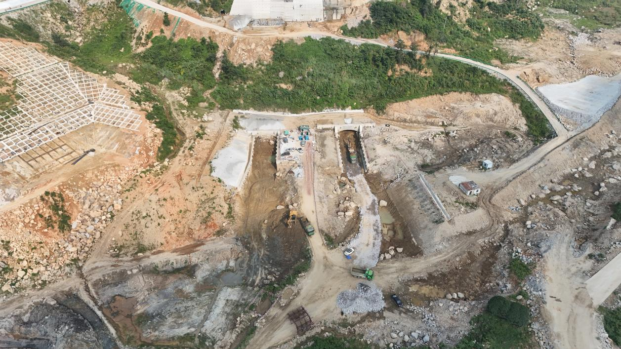 9月18日,隨著江西奉新抽水蓄能電站下水庫進出水口反鏟挖機第一鏟穩(wěn)穩(wěn)落下,歷時373天的鉆孔灌注樁攻堅戰(zhàn)圓滿收官,下水庫進出水口隧洞正式施工。 下水庫進出水口共有樁基182根,設計樁長共計4622米,回填片石累計5419米,其中111號樁基這根“硬骨頭”施工耗時81天、糾偏67次、回填片石164.5米。 下水庫進出水口地質(zhì)條件復雜,樁基施工時,沖擊鉆鉆頭一旦觸及孤石,便陷入“軟硬夾擊”的險境,極易發(fā)生偏孔、卡鉆、塌孔現(xiàn)象。施工期間,項目部攻堅克難,經(jīng)過多次研究討論,最終決定采用“樁基孔內(nèi)多次回填塊片石”糾偏措施進行處理,每次回填深度約2.0~2.5米,堅決把孤石“啃”成碎渣,把孔壁“擠”回垂直。面對這場與“與孤石較量”的極限挑戰(zhàn),項目部統(tǒng)籌規(guī)劃,晝夜趕工,高峰期11臺沖擊鉆同時作業(yè),最終樁基攻堅圓滿收官,隧洞接力沖刺向前。 該節(jié)點的順利實施為江西奉新抽蓄工程蓄水發(fā)電奠定了“第一塊基石”,下庫進出水口就此從“復雜地質(zhì)”走向“穩(wěn)穩(wěn)當當”,向工程實現(xiàn)蓄水發(fā)電目標邁出了關鍵一步。