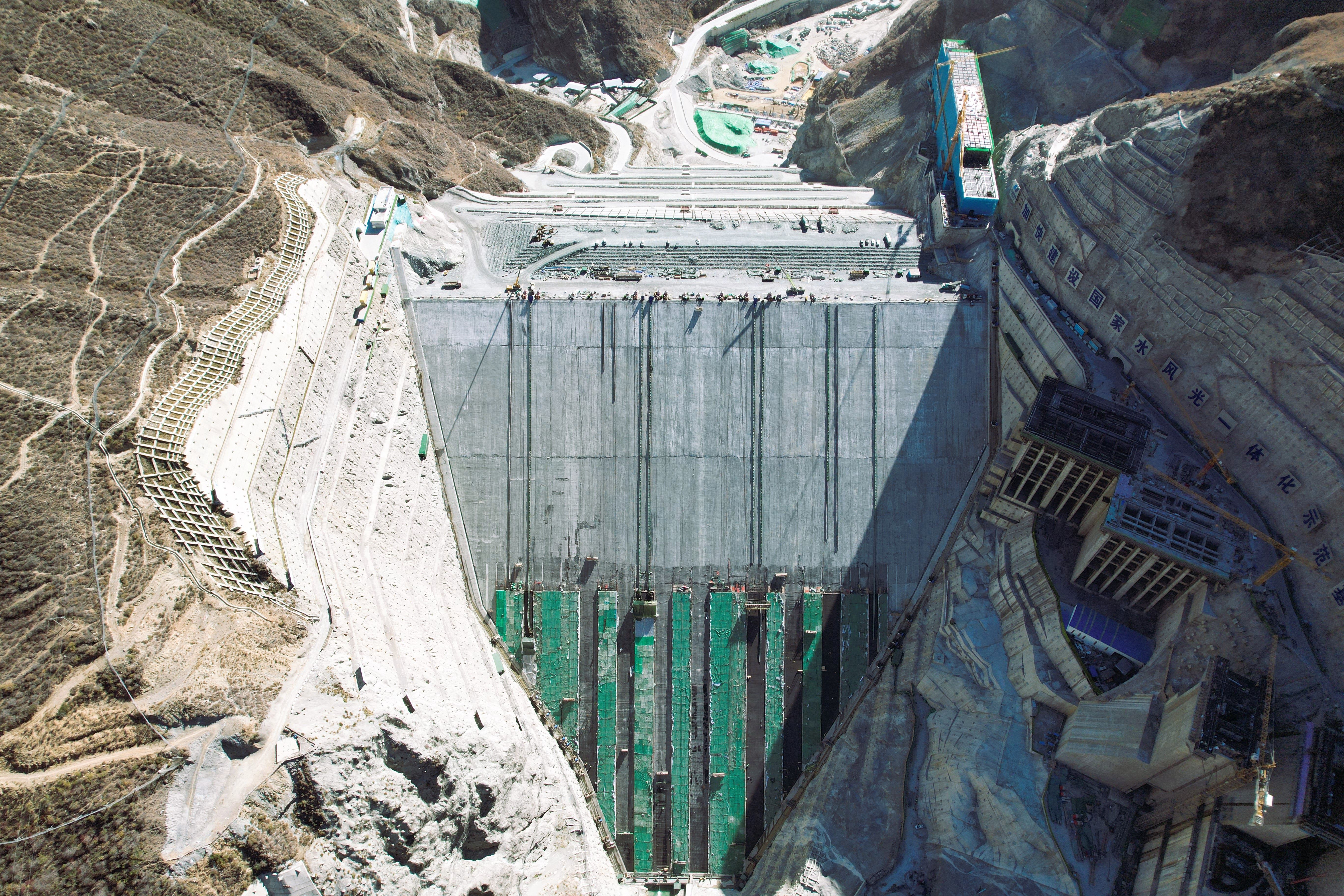 初冬時節(jié),川西高原金沙江畔寒意正濃,峽谷中凜冽的高風愈漸猛烈,拉哇水電站大壩建設現(xiàn)場卻熱潮涌動、機器轟鳴。作為國家“十四五”重點規(guī)劃的金沙江上游清潔能源基地核心工程,這座壩高242.5米的世界最高混凝土面板堆石壩,正迎來一期面板澆筑的施工高峰期。在這關鍵的攻堅階段,數(shù)百名水電建設者頂寒風、戰(zhàn)高坡、抗缺氧,在海拔近3000米的極端環(huán)境中晝夜奮戰(zhàn),以昂揚的姿態(tài),全力向年度目標發(fā)起沖刺。 寒風吹阻,難關重重 拉哇水電站為確保提前發(fā)電總目標、減小壩體沉降量,大壩采用一次填筑到頂在分期進行面板混凝土澆筑施工,共分三期施工,一期面板坐落于大壩底部關鍵受力區(qū)域,作為整個面板澆筑的開篇奠基環(huán)節(jié),一期面板澆筑時坡面斜長達400米,大壩壩前高差達230米。先天的地理環(huán)境與工程特性,以及入冬以來的寒冷天氣,卻讓高峰期澆筑面臨著“高寒、高坡、超斜長距離”三重疊加的嚴峻考驗,每一步推進都充滿挑戰(zhàn)。 特別是當下的寒冷天氣,可謂目前制約施工推進的首要困難。當前高原氣溫日漸下降,目前施工現(xiàn)場最低氣溫已降至零下3℃,而正午時分施工區(qū)域氣溫可達20℃,晝夜溫差可達15℃至20℃。負溫環(huán)境以及大幅溫差給面板混凝土澆筑的全流程帶來了全方位、高難度的挑戰(zhàn),對施工組織、技術管控和安全保障提出近乎嚴苛的要求。 首先最明顯的是施工人員作業(yè)效能下降,安全管控壓力劇增。寒冷天氣導致一線作業(yè)人員四肢僵硬,在進行鋼筋綁扎、混凝土振搗等工作時,整體效率下降,常規(guī)施工工效難以維持。同時,低溫使得人員反應速度和操作靈活性降低,增加了各類設備操作時的安全風險,給現(xiàn)場安全管控帶來了不小的壓力。 而在面板澆筑各流程上,從初始的制料、運料環(huán)節(jié),就受到當前氣溫影響,再加之超斜長運輸距離,混凝土運輸環(huán)節(jié)溫控難度突出。高海拔低溫環(huán)境下,混凝土拌制完成后熱量流失速度遠超平原地區(qū),如何確保下料口倉面混凝土溫度達到相關設計標準,同時維持坍落度穩(wěn)定、減少塌損,成為運輸環(huán)節(jié)的一大難題,若保溫措施不到位,不僅會影響混凝土入倉質(zhì)量,更可能引發(fā)后續(xù)澆筑缺陷,對溫控措施的精準性和有效性構成嚴峻考驗。 混凝土澆筑完成后,養(yǎng)護作業(yè)保溫保濕的要求又成為質(zhì)量管控的難點。一方面需保證表面濕潤,防止混凝土因失水產(chǎn)生裂縫;另一方面需抵御極端嚴寒,避免表面結冰破壞結構。而施工現(xiàn)場環(huán)境較為干燥,且常伴有大風天氣,干燥大風環(huán)境下混凝土表面水分蒸發(fā)快,增加了塑性收縮裂縫產(chǎn)生的風險。同時,負溫環(huán)境下混凝土內(nèi)外溫差極易超出控制范圍,引發(fā)溫度應力裂縫,對養(yǎng)護措施的針對性、及時性和精細化程度提出極高要求,任何環(huán)節(jié)的疏漏都可能影響面板施工質(zhì)量。 綜上,寒冷天氣的影響貫穿了混凝土拌制、運輸、澆筑、養(yǎng)護全流程,對技術管控、人員效能到進度推進、質(zhì)量保障各方面工作形成了多重制約,一期面板澆筑每一步推進均需直面高寒帶來的嚴峻挑戰(zhàn),需以極致精細的管控措施破解各類難題。 聚力攻堅,勇破困局 針對上述寒冷天氣帶來的一系列困難,項目部統(tǒng)籌布局、精密策劃,多措并舉保證面板澆筑順利進行。 首先在混凝土運輸環(huán)節(jié),項目部團隊對運輸罐車進行改裝升級,在外側包裹保溫車衣用以減少混凝土在運輸過程當中的熱量散失,并在壩頂卸料口處搭設保溫棚、安裝暖風機,溜槽全段覆蓋保溫棉,確保卸料口和混凝土垂直運輸途中溫度適宜、坍落度穩(wěn)定。 在抹面平臺上,項目部通過布置防雨篷布形成封閉空間,并增設暖風機進行增溫,既減小了負溫環(huán)境對于混凝土初凝時間的影響,又通過提高區(qū)域溫度,營造相對適宜的操作環(huán)境,提升了現(xiàn)場作業(yè)人員的工作效率。 在養(yǎng)護方面,為了保證混凝土在低溫環(huán)境下的溫度和濕度,項目部采取了多重措施應對不同的氣溫和溫差。氣溫在5℃以上且混凝土溫差較小時,在混凝土二次抹面結束后立即全覆蓋塑料薄膜防止水分蒸發(fā),混凝土終凝后掀走塑料薄膜,立即全覆蓋土工布,并在土工布上部安裝養(yǎng)護水管進行流水養(yǎng)護,然后在上部覆蓋保溫被;在氣溫溫差較大或氣溫可能達到0℃以下時,在混凝土二次抹面結束后立即涂刷養(yǎng)護劑并覆蓋塑料薄膜鎖水、減緩熱量流失,最外層鋪蓋保溫棉被,以多層防護保證混凝土處在保溫、保濕狀態(tài)下,兼顧濕潤防裂與抗凍需求,有效化解面板開裂的風險。 除了在澆筑作業(yè)過程中狠下功夫,項目部還對設備維運、施工安全等各方面進行精準管理,為大壩面板施工質(zhì)量、進度與安全筑牢堅實屏障。 針對各類機械、設備,特別是溜槽、卷揚機等關鍵設備,項目部團隊安排專人每日進行巡檢,在溜槽搭設階段時,就對搭接長度、鋼絲繩加固、卡扣加固、螺帽擰緊、防雨布、保溫布覆蓋等各環(huán)節(jié)進行詳細檢查,搭設完成后,又安排相應負責人進行復核,確保開倉澆筑時,整個澆筑倉面作業(yè)人員的安全。 在人員方面,項目部聚焦人員作業(yè)效率與安全風險,多維保