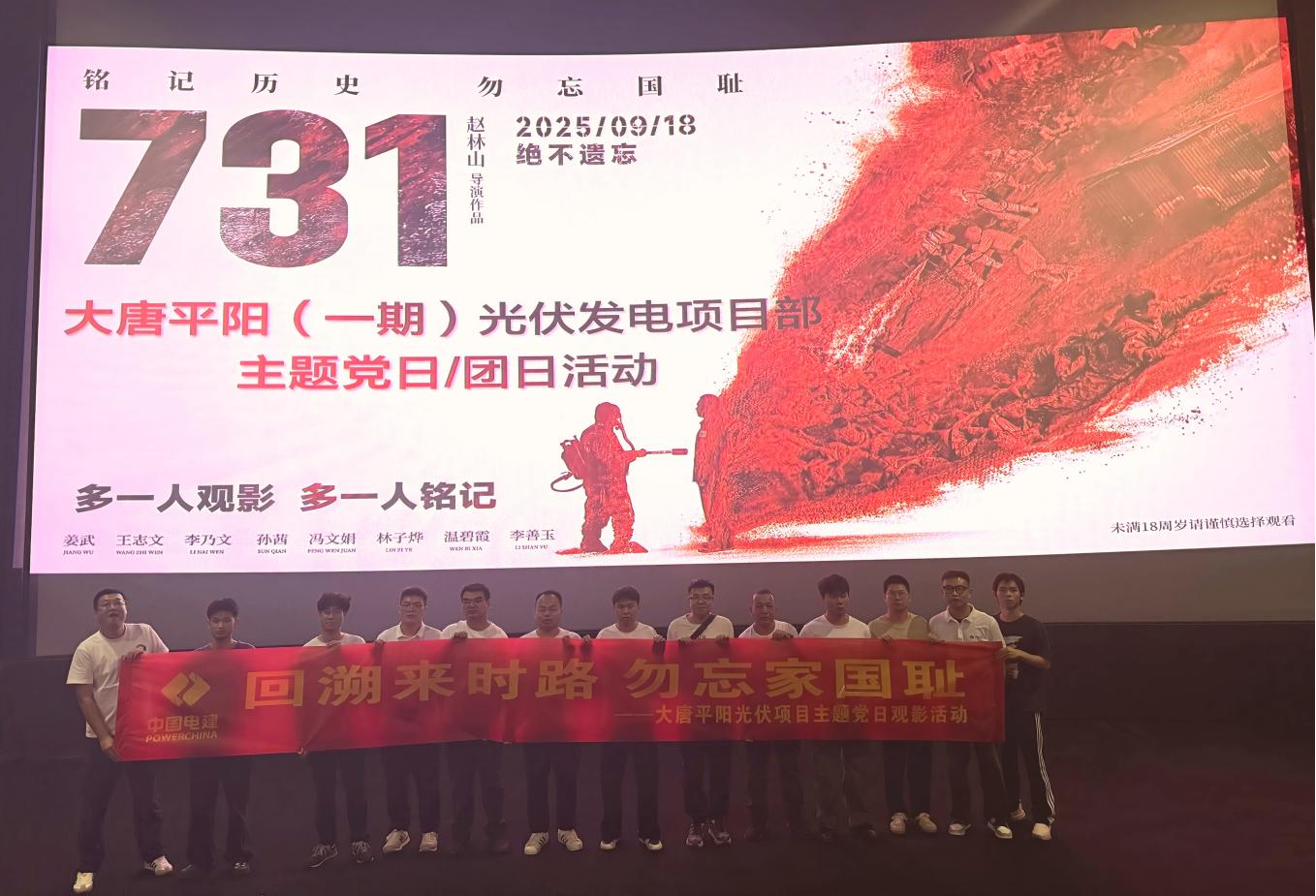 9月27日,大唐平陽(yáng)光伏發(fā)電項(xiàng)目組織黨員干部、團(tuán)員青年開(kāi)展“回溯來(lái)時(shí)路 勿忘家國(guó)恥”主題黨日、團(tuán)日活動(dòng),集體觀(guān)看了愛(ài)國(guó)主義歷史教育影片《731》,深切緬懷革命先輩,弘揚(yáng)愛(ài)國(guó)主義精神,銘記革命先輩抗戰(zhàn)歷史,走好屬于新一代人的長(zhǎng)征路,勇?lián)腥A民族偉大復(fù)興的使命與責(zé)任。 影片通過(guò)深刻真實(shí)的場(chǎng)景再現(xiàn),揭露了侵華日軍在我國(guó)境內(nèi)犯下的泯滅人性的惡行,一幕幕驚悚的人體實(shí)驗(yàn),揭示了那段不容忘卻的苦難歲月,展現(xiàn)了先輩們?cè)跇O端殘酷環(huán)境下所表現(xiàn)出的不屈意志和偉大犧牲精神。 歷史的回響,叩擊心靈;未來(lái)的征途,催人奮進(jìn)。這段慘痛的歷史是中華民族永遠(yuǎn)的傷痛記憶,必須被深刻銘記。先輩們所承受的苦難與犧牲,換來(lái)了今日國(guó)家的獨(dú)立、民族的解放與和平的珍貴。他們對(duì)國(guó)家、對(duì)民族的深沉大愛(ài)和無(wú)私奉獻(xiàn)精神,是激勵(lì)我們不斷前行的寶貴財(cái)富。通過(guò)此次觀(guān)影更讓我們意識(shí)到,銘記歷史不是為了延續(xù)仇恨,而是為了從歷史中汲取教訓(xùn),珍視和平,奮發(fā)圖強(qiáng)。作為新時(shí)代的建設(shè)者,我們要將這份對(duì)先輩的敬重,對(duì)歷史的正視,內(nèi)化于心、外化于行,轉(zhuǎn)化為做好本職工作的強(qiáng)大動(dòng)力。 前事不忘,后事之師。此次主題觀(guān)影活動(dòng),有效增強(qiáng)了項(xiàng)目團(tuán)隊(duì)的凝聚力和向心力,深化了成員們的家國(guó)情懷與歷史擔(dān)當(dāng)。決心以史為鑒,將內(nèi)心的觸動(dòng)升華為前進(jìn)的動(dòng)力,轉(zhuǎn)化為立足崗位、銳意進(jìn)取的實(shí)際行動(dòng),在未來(lái)的工作與生活中恪盡職守、團(tuán)結(jié)協(xié)作,為實(shí)現(xiàn)個(gè)人價(jià)值與團(tuán)隊(duì)目標(biāo),為推動(dòng)企業(yè)高質(zhì)量發(fā)展、助力國(guó)家能源事業(yè)而不懈奮斗。